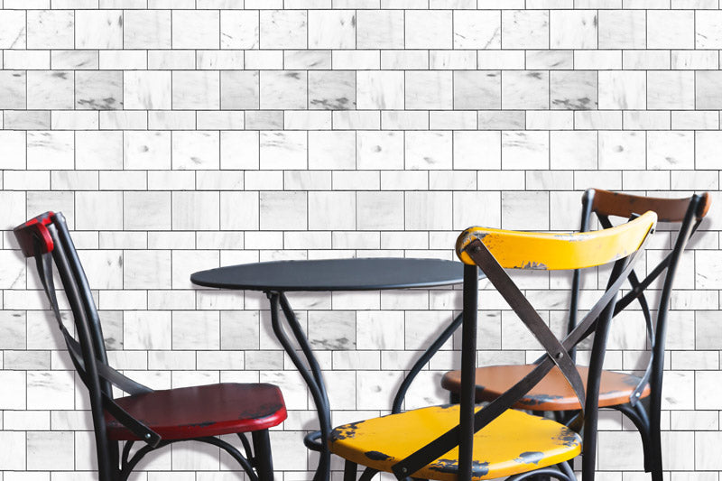 Big and Small White Mable Tile Peel and Stick Wallpaper