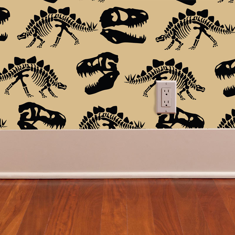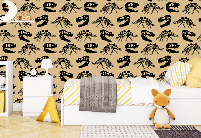 Is your youngster obsessed with dinosaurs? This Dino bones peel and stick wallpaper pattern is the perfect choice for their bedroom or play room. You can decorate just one wall or even the entire room. Your little guy or gal will be super excited when they see it.