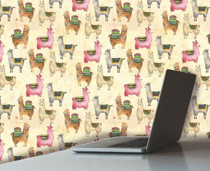- Llamas, llamas, and more llamas.. You're undoubtedly going to be seeing llamas when you put this peel and stick wallpaper pattern in your space. Be the envy of all your llama loving friends and family when you get this pattern, so what the heck are  you waiting for?