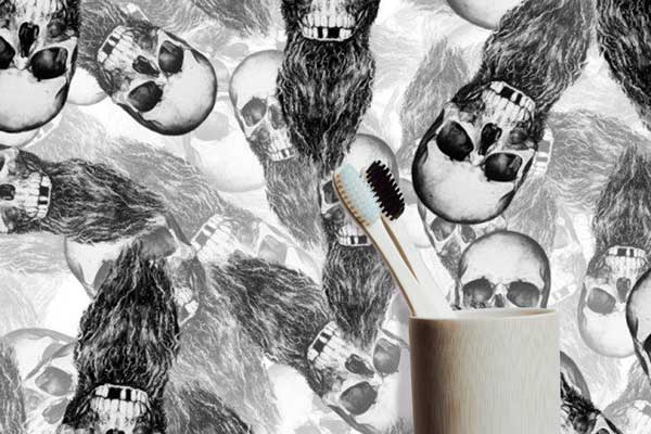 Bearded Skulls Black and White Peel and Stick Wallpaper