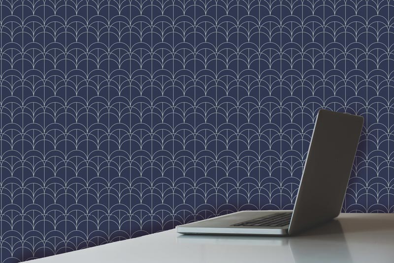 Dark Blue Arches Art Deco Peel and Stick Wallpaper