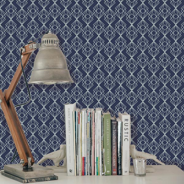 Dark Blue Multi Diamond Art Deco Peel and Stick Wallpaper