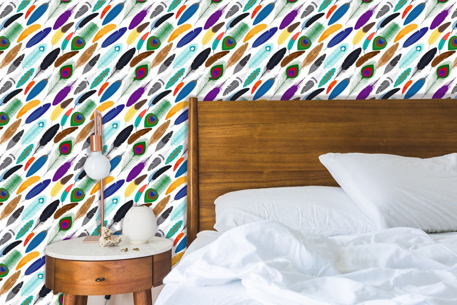 - Imagine this bright and beautiful wallpaper on your walls. These amazing looking feathers are so colorful they'll make your home even better. Don't look for too long.. order them and now and get them on your walls as soon as you can.