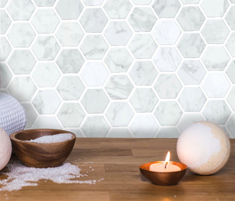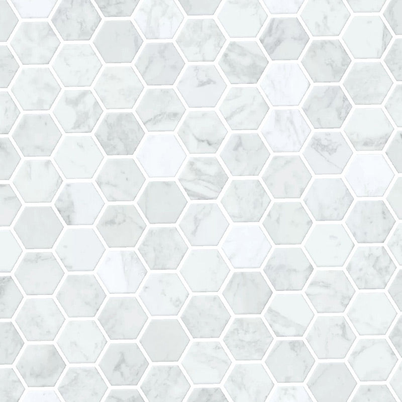 Here's the hexagon marble tile pattern you were looking for. This beautiful tile pattern will go great in you home, RV, condo or really any space you decide to install it in. You'll enjoy the look of tile with out the cost or mess and the easy of peel and stick wallpaper.