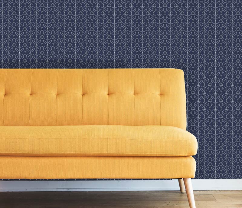If you like arches and art deco patterns this is the one you want in your space. No matter if you install it in you home, apartment, condo or office you're sure to love it. With a dark bule background and an amazing pattern you won't be disappointed. Install it on smooth or semi smooth painted walls or other surfaces.