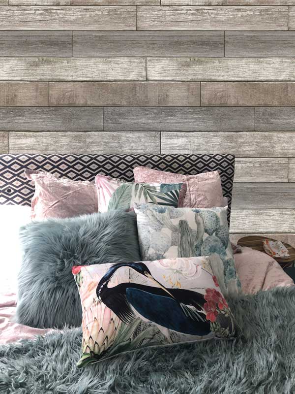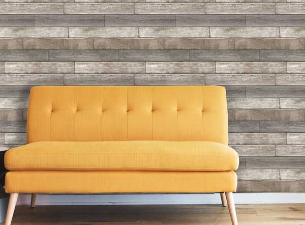 - Get a great wood plank look on any accent wall you choose without the mess or price. This gray wood plank peel and stick wallpaper is sure to look awesome in your home, apartment or business.