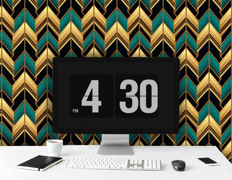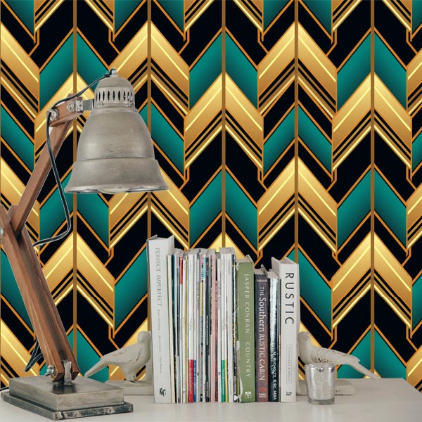 Orange Black and Turquoise Art Deco Removable Wallpaper
