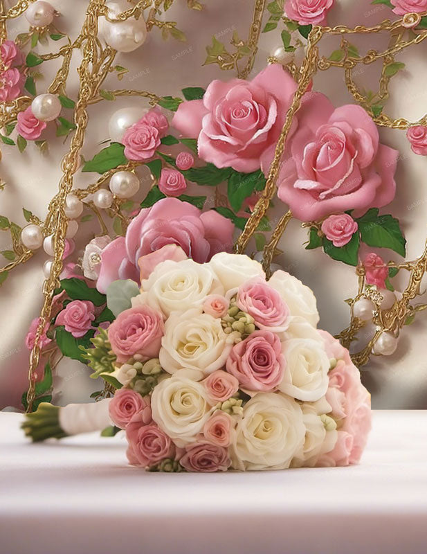 Pink Roses and Pearl Chains on Satin Removable Wallpaper