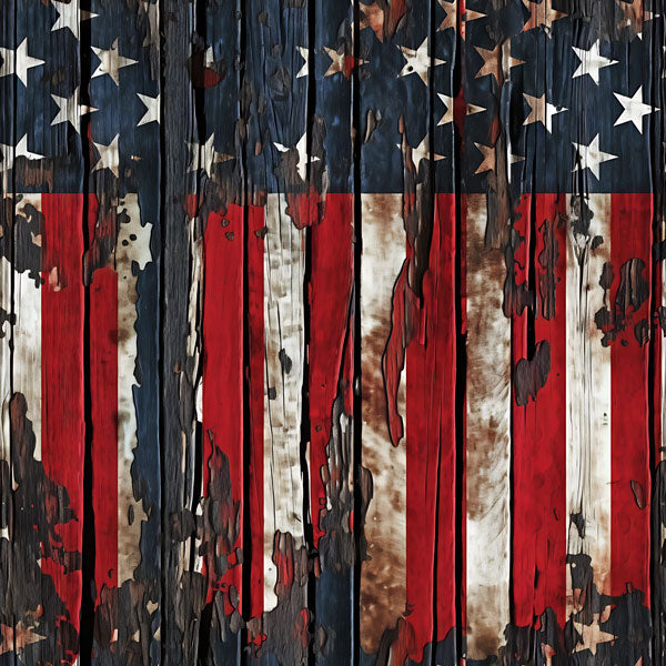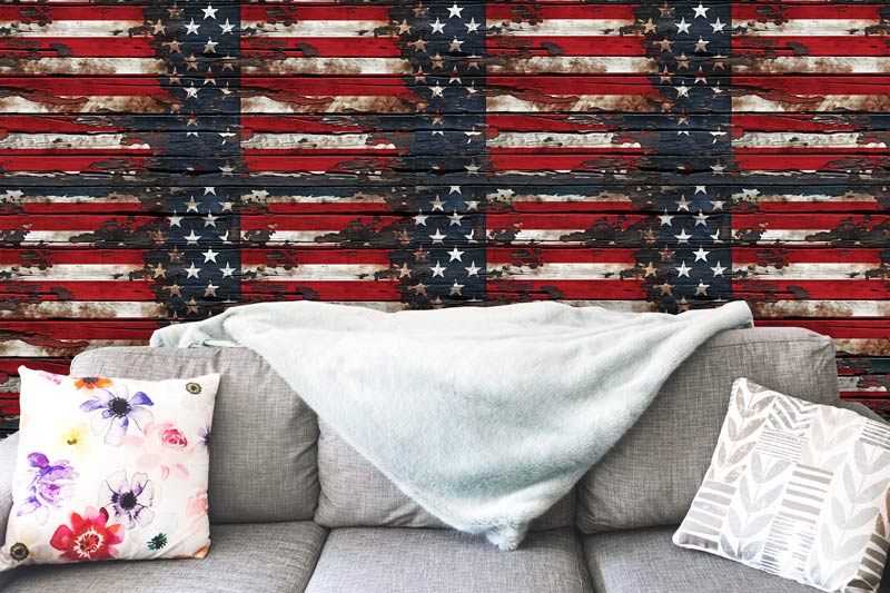 USA... USA! You'll fall for this extraordinary tattered US Flag on wood wallpaper pattern. It would be a great addition to your camper, screened porch, cabin or other space. Maybe you simply want to use it for a decoration for your upcoming 4th of July celebration. No matter what you use it for it will look astounding.  For best results install it on smooth flat finished surfaces.